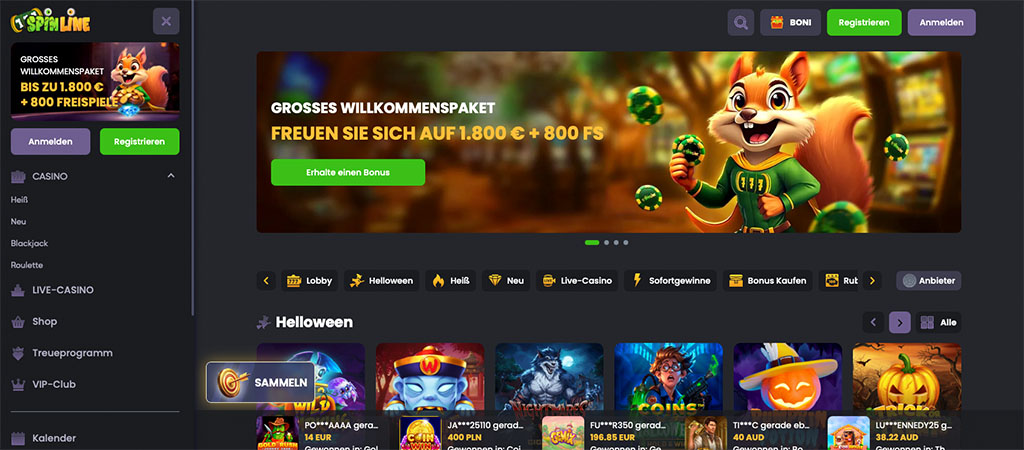 Der Willkommensbonus bei Spinline Casino ist ein riesiges Willkommensbonus-Paket Angebot von bis zu €1.800 und 800 Freispiele.