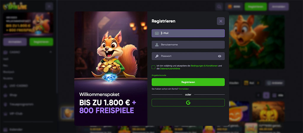 Die Erstellung eines Kontos bei Spinline ist einfach und dauert nur weniger als eine Minute. Nachdem Du auf das Registrierungsfenster geklickt hast, musst Du Deine E-mail Adresse, einen Benutzernamen, den Spieler und der Support sehen können, und natürlich ein Passwort eingeben.